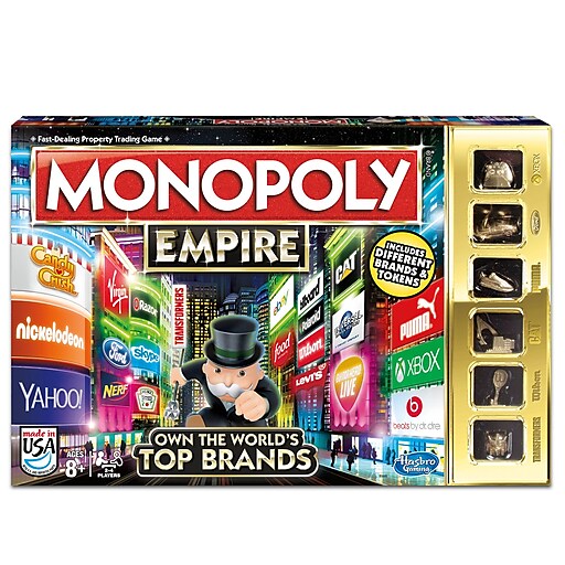 Own the world's top brands by hasbro. Monopoly empire is the latest release in the monopoly game series by hasbro, and is probably the biggest change in the formula of the game since it first released in around 1936. Monopoly empire is a game play variant of monopoly that has players collecting billboards to fill a tower instead of properties to bankrupt opponents. Monopoly empire, you can now buy and sell your favorite brands. These items, as well as the typical chance cards and pretend money, must be set up on the flashy skyscraper.